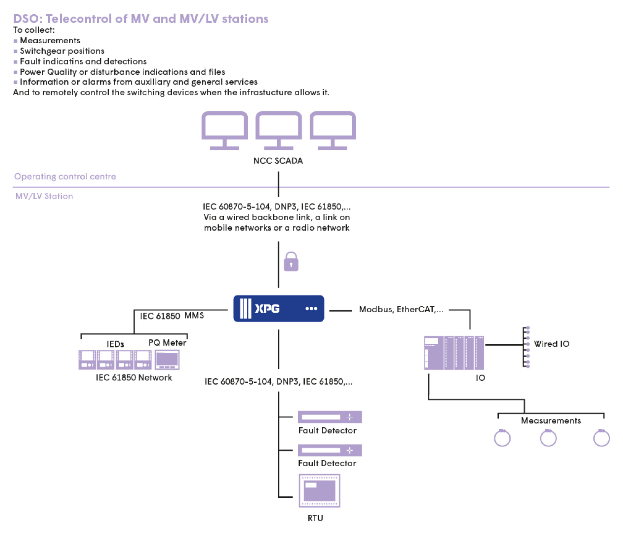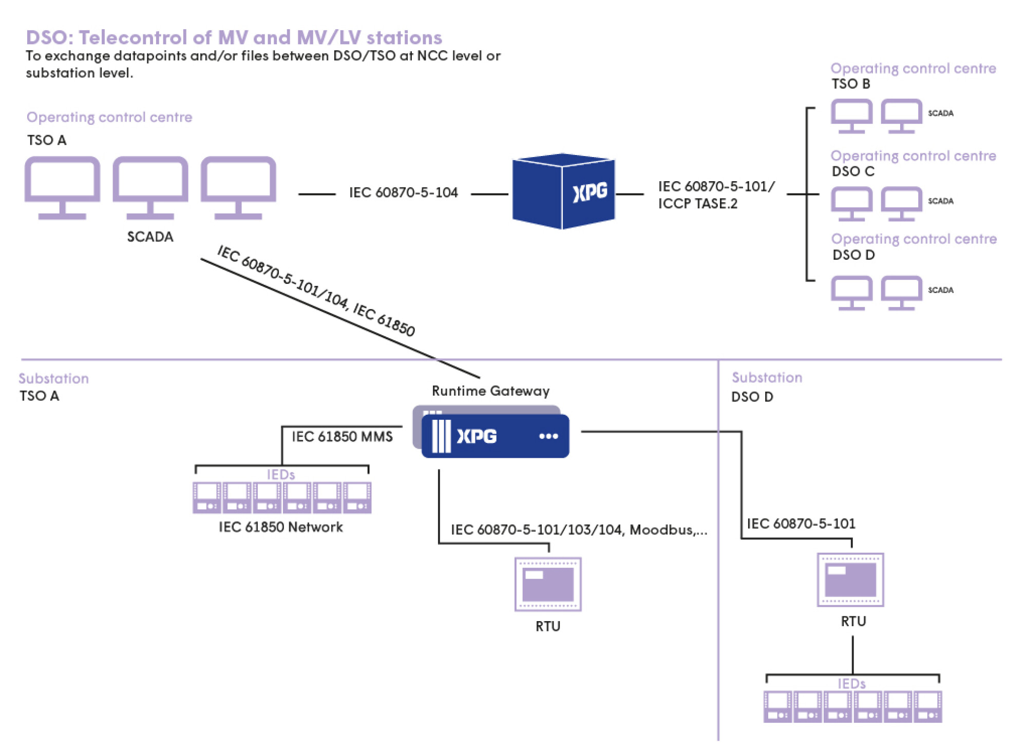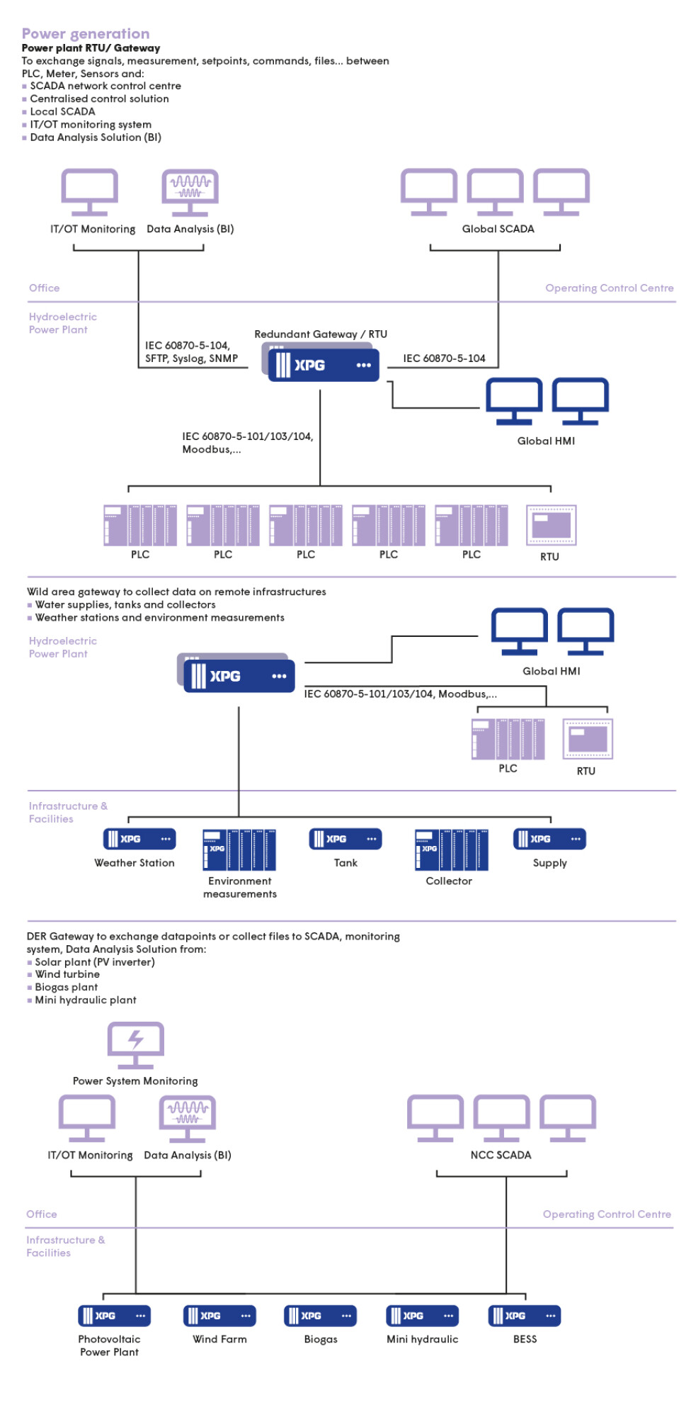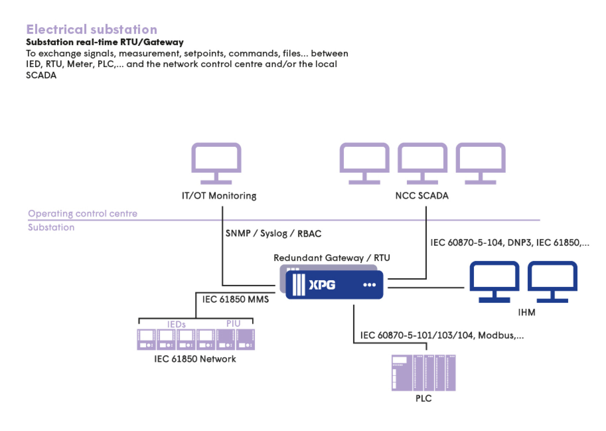 XPG is a scalable solution designed for the control and command of power grid infrastructure. XPG handles data acquisition, processing and transfer (Gateway/RTU) as well as local supervision (HMI). From small to large volumes of data, XPG enables total interoperability with equipment from different suppliers.