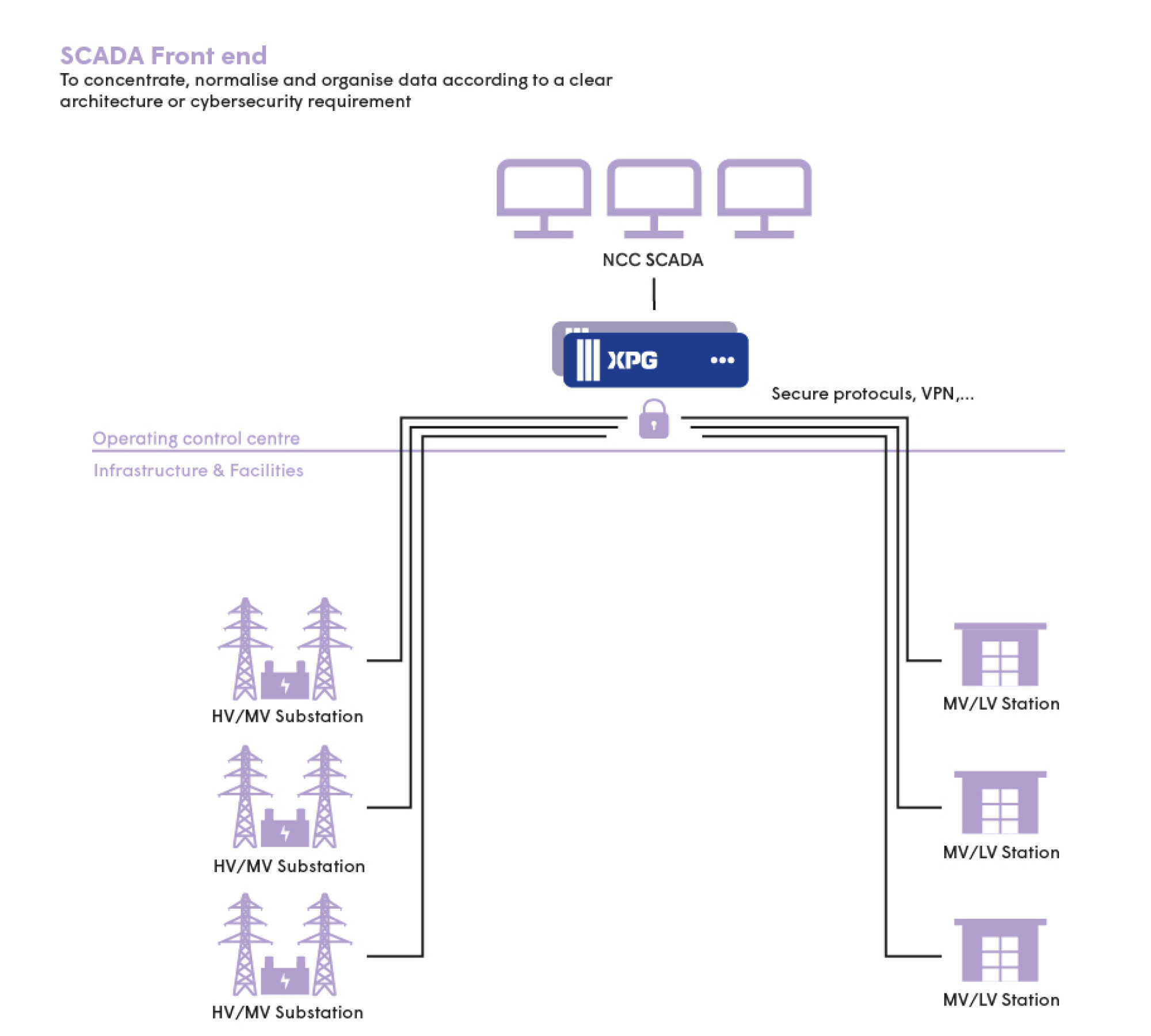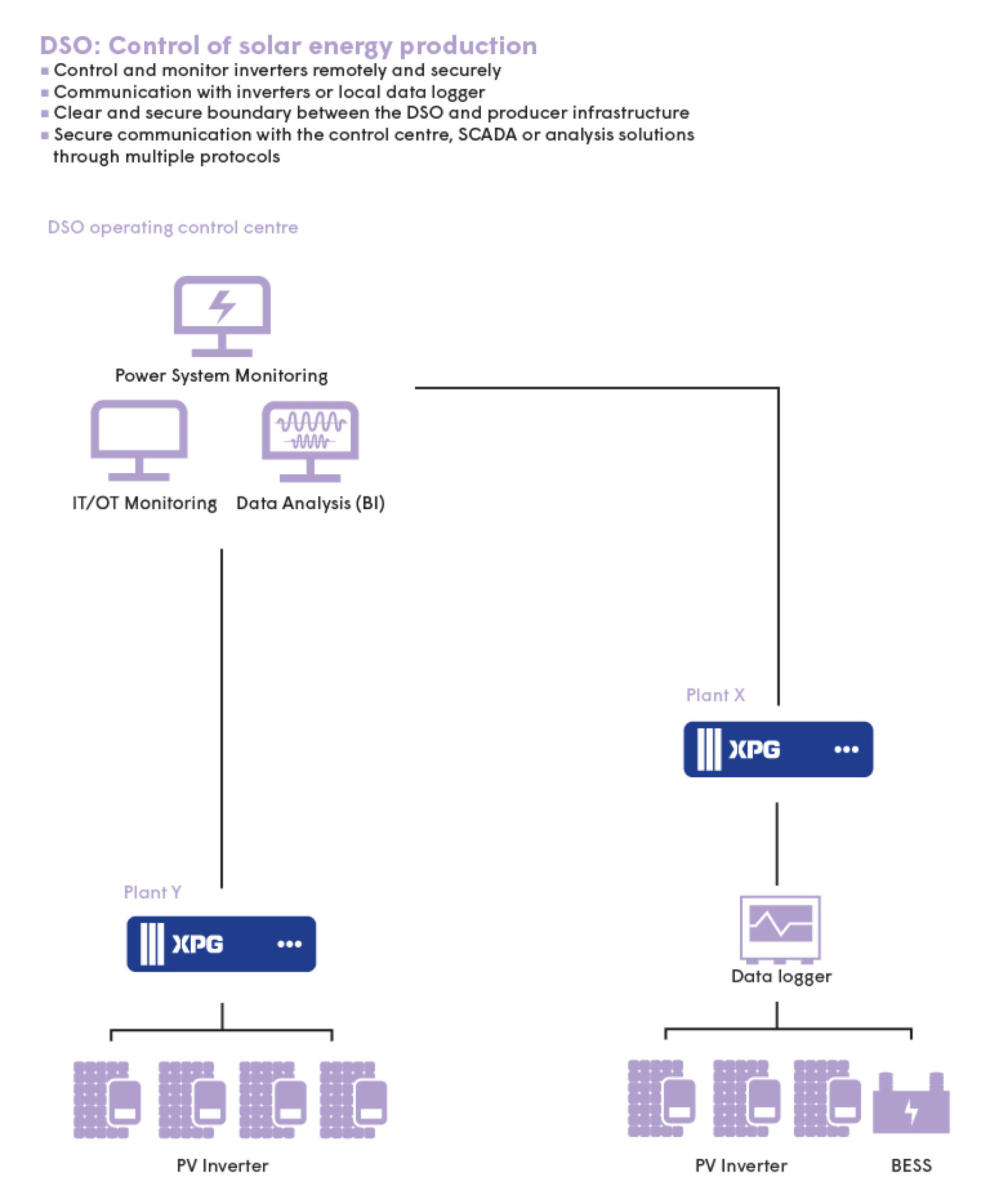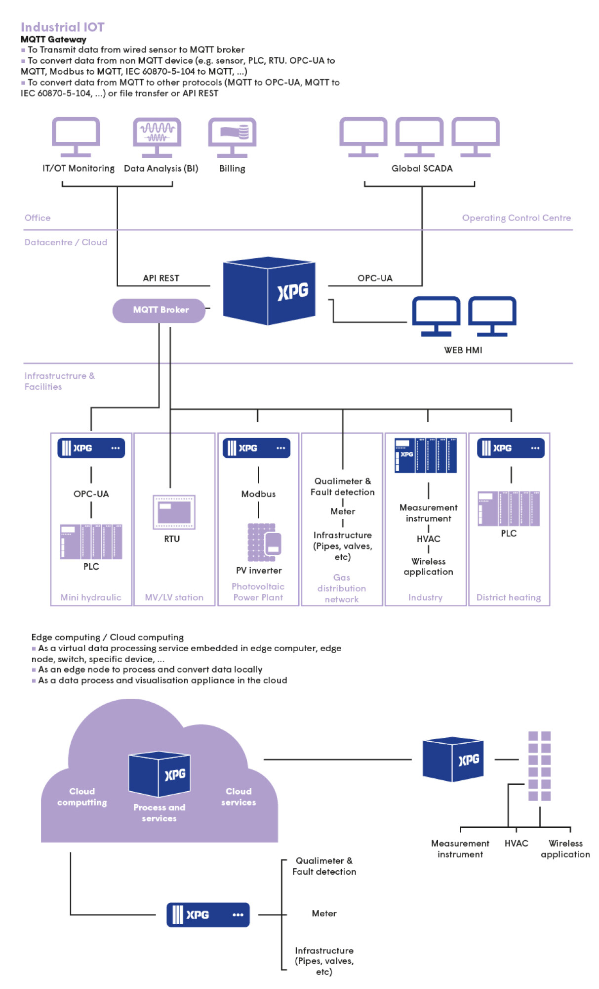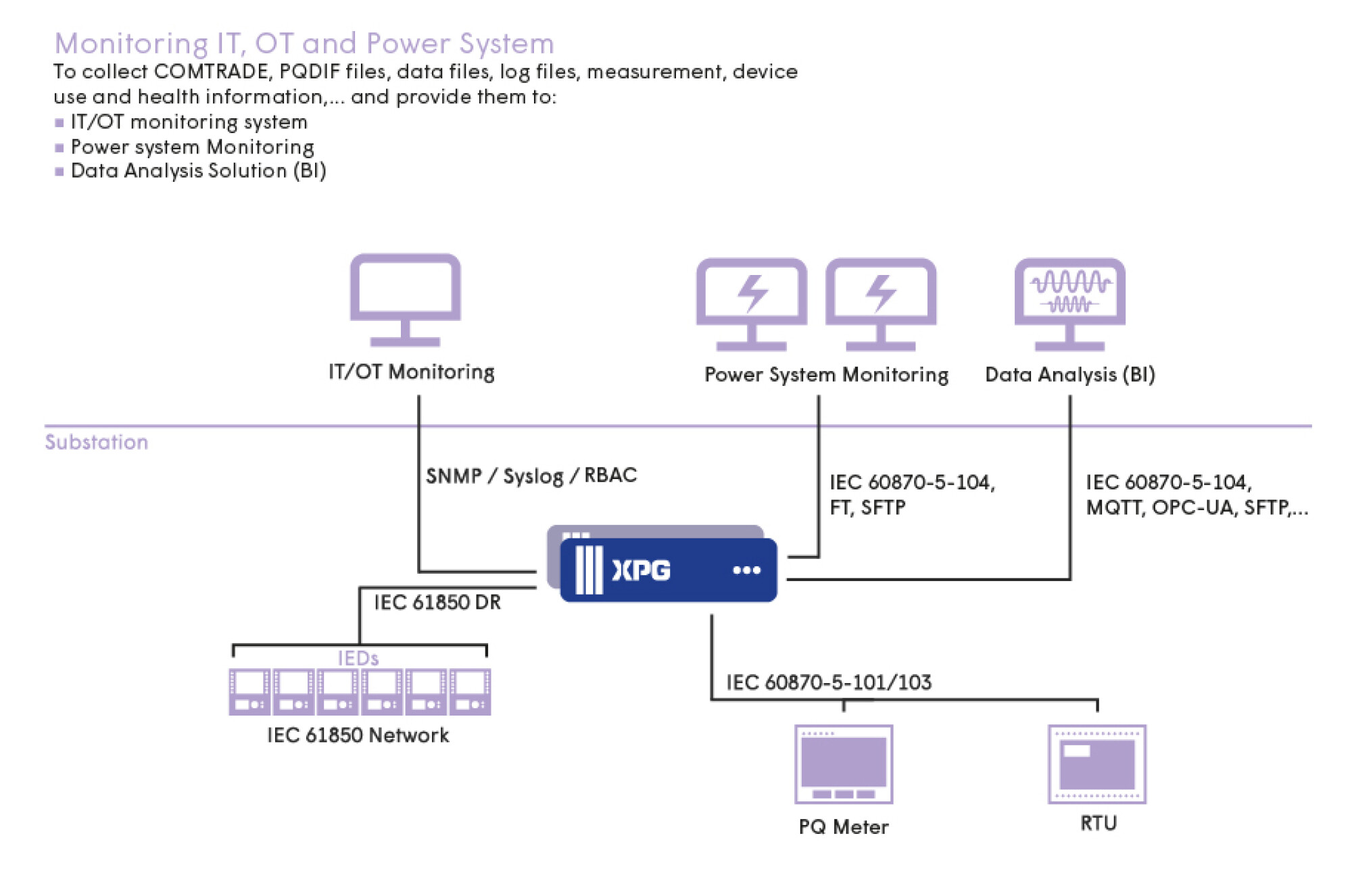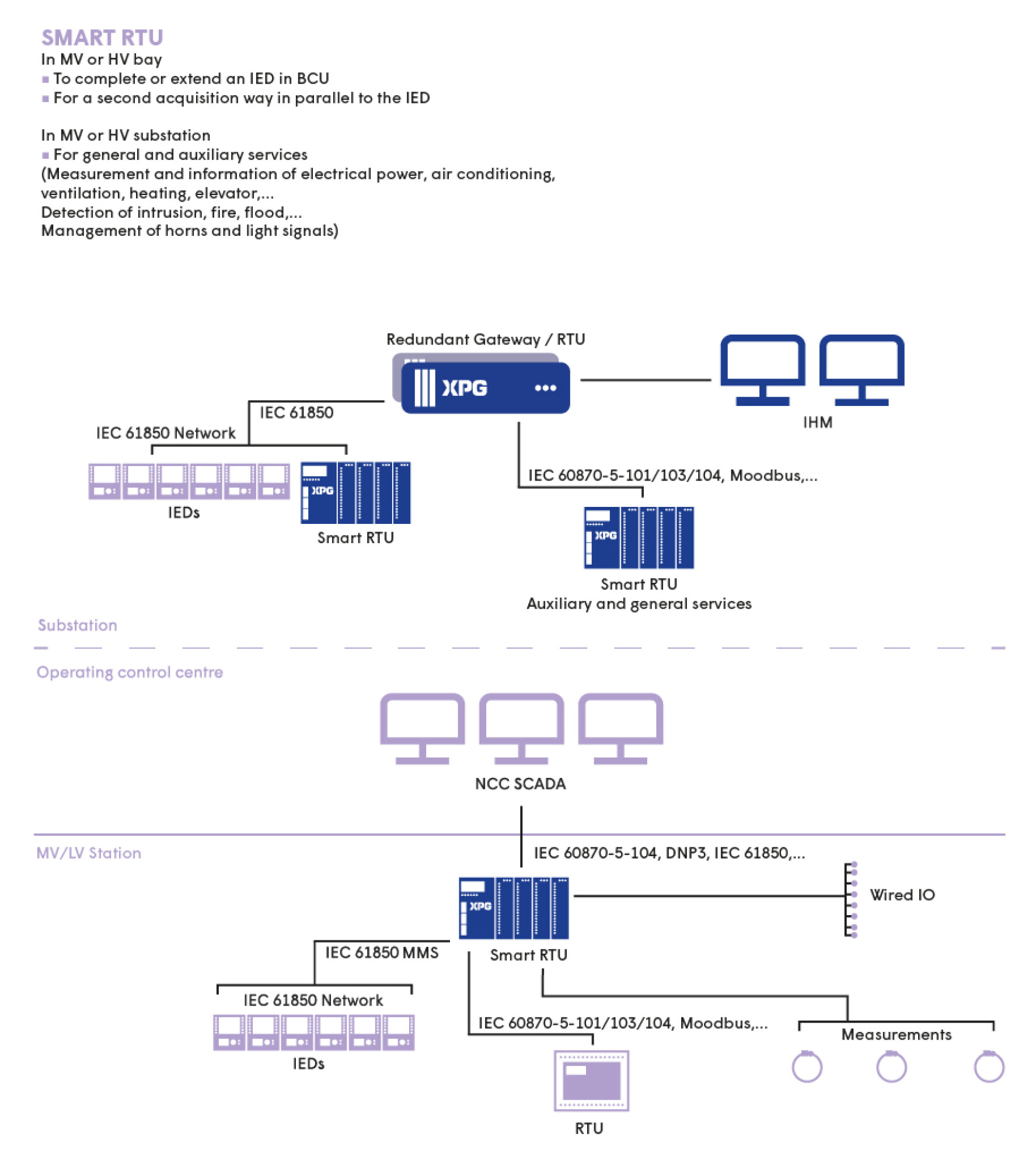 XPG is a scalable solution designed for the control and command of power grid infrastructure. XPG handles data acquisition, processing and transfer (Gateway/RTU) as well as local supervision (HMI). From small to large volumes of data, XPG enables total interoperability with equipment from different suppliers.